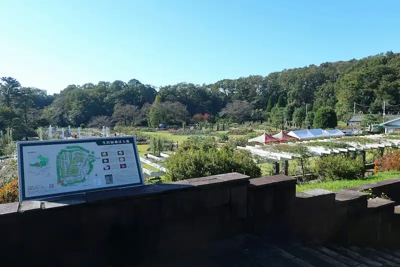 多摩丘陵の一角に位置する川崎市内最大の緑地・生田緑地には、向ヶ丘遊園の名残であるバラ園が開園しています。